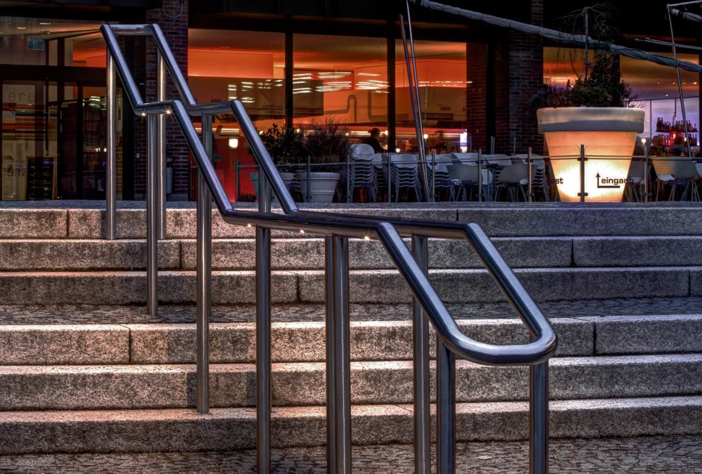 Fox Design has designed the lighting for the Gasteig Culture centre in Munich. Their LED-lights illuminates the outdoors environment at the centre. The lighting plan was designed by the light designer Ulrike Brandi, who chose 300 HLS LED lights to place at the stairs.